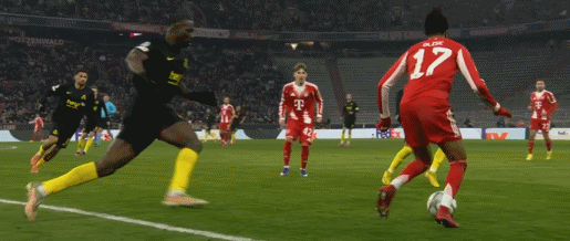 第90分钟,阿方索-戴维斯面对多人包夹,随后完成摆脱